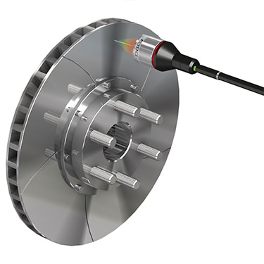 La misurazione del run-out dei rotori utilizzando un sensore di spostamento senza contatto migliora i tempi di ciclo e le prestazioni. La Serie CL-3000 viene comunemente selezionata per le sue dimensioni compatte e la stabilità di misurazione su qualsiasi materiale e finitura superficiale.