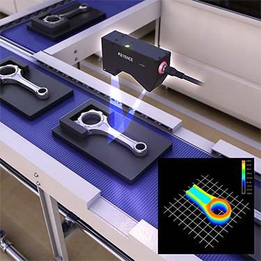 Ispezione simultanea di aspetto e dimensioni critiche delle aste di collegamento dei motori. Le immagini 3D ad alta risoluzione generate dal profilometro laser 2D/3D Serie LJ-X8000 rendono possibile l’acquisizione di eventuali difetti già nelle fasi iniziali del processo.