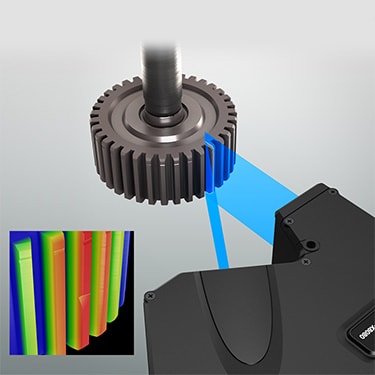 L’ispezione 3D consente un rilevamento affidabile di scheggiature e altri difetti nei denti degli ingranaggi. Il profilometro laser è in grado di rilevare in modo stabile i cambiamenti relativi di altezza, in modo da individuare scheggiature e catalogarle in base a profondità e dimensioni (anche su superfici angolate).