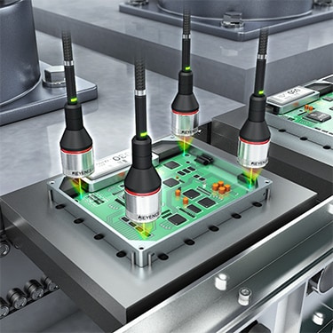 Utilizzando sensori di spostamento laser ultra-compatti, è possibile ispezionare la precisione degli assemblaggi fino a 6 punti contemporaneamente. Le testine coassiali della Serie CL-3000 hanno diametri ridotti fino a 8mm, permettendo un’ispezione in più punti ad alta velocità anche in spazi ristretti.