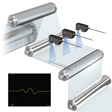 Monitorando la distanza tra i rulli di rivestimento a una o entrambe le estremità, è possibile mantenere un rigoroso controllo sullo spessore dei fogli. La Serie LS-9000 è in grado di misurare distanze minime fino a 10 μm, per cui questa soluzione funziona anche per i film estremamente sottili.