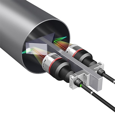 La misurazione senza contatto del diametro interno di un tubo è possibile con sensori compatti e specchi ad angolo retto.