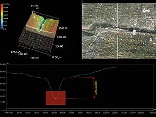È possibile utilizzare queste funzioni per valutare quantitativamente difetti come le superfici ruvide. Un'unica unità VHX consente di completare l'osservazione, la misurazione e la creazione di report con un solo dispositivo.