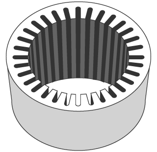 La lamiera di acciaio elettromagnetica realizzata a partire da materiali magnetici morbidi è utilizzata poiché i poli magnetici devono essere invertiti istantaneamente. Più sottili sono le lamiere di acciaio elettromagnetiche, più corrente parassita è possibile sopprimere nelle lamiere di acciaio elettromagnetiche. (Perdite di energia minori) Inoltre, è possibile ridurre le perdite di corrente parassita rivestendo le superfici delle lamiere per isolarle tra loro.