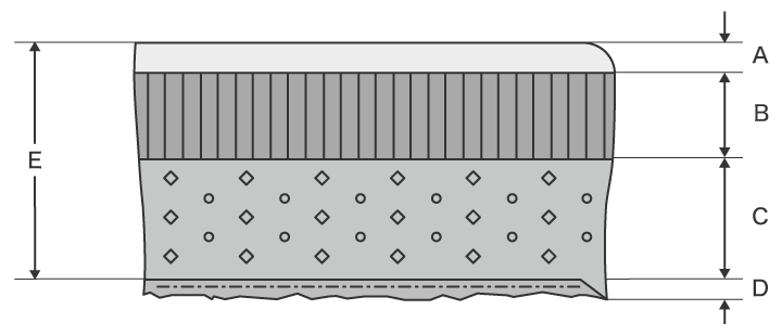 - Superficie cesoiata: superficie lucida con strisce verticali. Sono presenti sottili graffi causati dal taglio del punzone durante la tranciatura e dall'attrito tra il metallo depositato e il materiale.