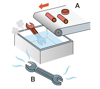 Il trattamento termico è indicato dalla Japan Metal Heat Treatment Association come il processo di riscaldamento del metallo fino a quando non diventa rosso e il successivo raffreddamento. È descritto come una tecnica di lavorazione del metallo che migliora le proprietà riscaldando e raffreddando i materiali in metallo senza cambiarne le forme. Il trattamento termico è un processo di lavorazione del metallo, come il taglio e la modellazione della plastica, e le proprietà da modificare includono forza, durezza, tenacia, resistenza agli urti, resistenza all’usura, resistenza alla corrosione, proprietà di elaborazione e lavorabilità a freddo.