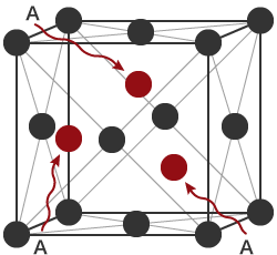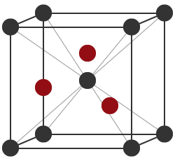 Dopo la tempra, il ferro prende la forma di una griglia cubica a facce centrate, in cui gli atomi si trovano a ciascun vertice e nei centri delle facce del cubo e il carbonio si fonde in questo stampo.