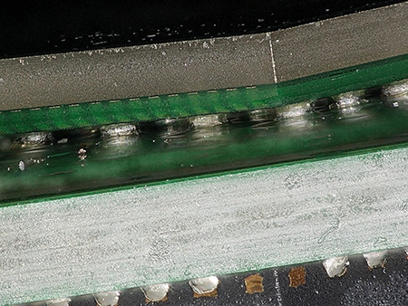 L'osservazione inclinata consente di osservare le sfere BGA attraverso uno spazio libero su una PCB.