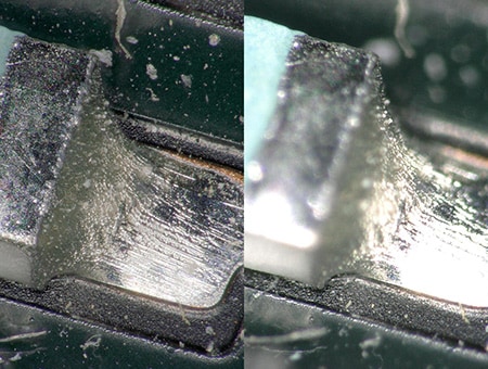 Con i microscopi tradizionali, l'illuminazione è difficile da impostare a causa del riflesso delle superfici di saldatura, causando variazioni nei risultati tra gli operatori.