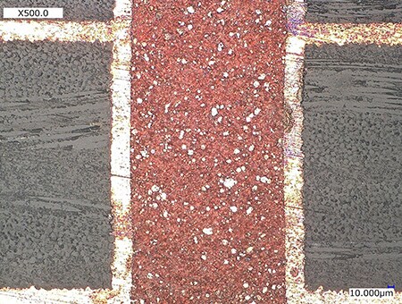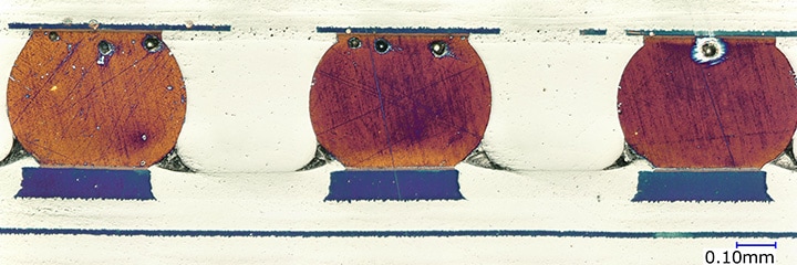 Il microscopio digitale 4K della Serie VHX fornisce immagini completamente a fuoco delle sezioni trasversali, anche in presenza di irregolarità introdotte da una lucidatura insufficiente. Queste immagini consentono un'osservazione ad alta risoluzione senza che vengano trascurati i vuoti.