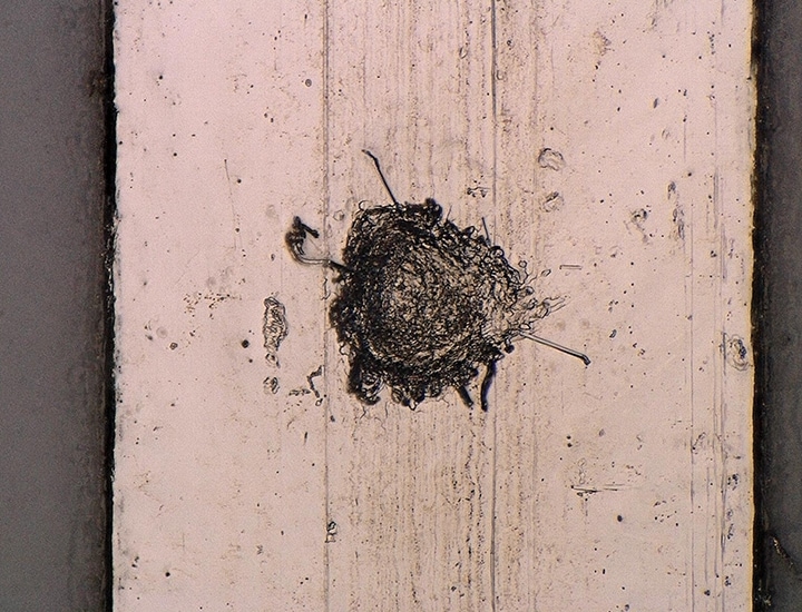 L'uso del sistema di osservazione ad angolo libero e del piatto motorizzato XYZ ad alta precisione consente l'osservazione inclinata, che non era possibile con i microscopi tradizionali. Il whiskering dello stagno cresciuto che forma proiezioni simili a noduli può essere osservato efficacemente nella posizione e dall'angolazione desiderate.