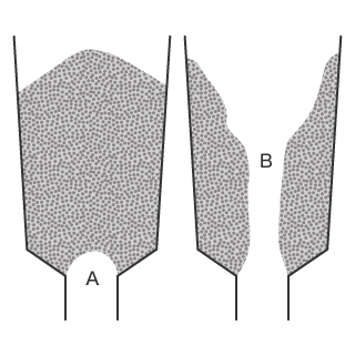 Le polveri con una bassa fluidità, come la farina di frumento, non si spargono sul piano orizzontale, mantenendo la propria forma quando impilate in forma conica. Le polveri con bassa fluidità sono difficili da scaricare da tramogge e silos e possono formare ponti o cunicoli.