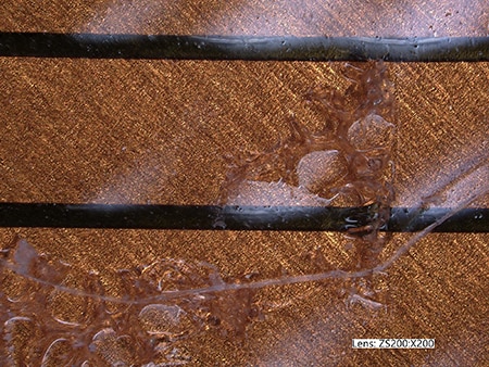 La vernice fluorescente viene applicata sul target, che viene poi lavato, lasciando solo la sostanza fluorescente nei graffi e nelle crepe. L'applicazione di luce UV a questa sostanza ne provoca la fluorescenza, che può essere verificata a occhio nudo e con telecamere. La Serie VHX può essere utilizzata per l'immagine di graffi microscopici ad alto ingrandimento.