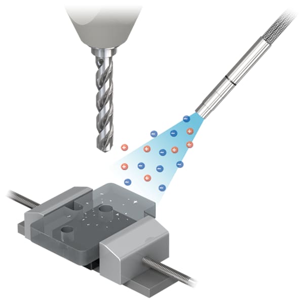 Quando viene tagliato o lucidato un componente di plastica, il materiale di scarto di questo processo rimane attaccato al pezzo. Per evitare danni, questi scarti devono essere soffiati via: uno ionizzatore alimentato ad aria può fare proprio questo.