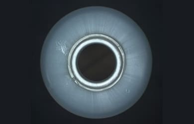 La luce si riflette lungo la circonferenza in base al profilo del target. La condizione della superficie del target è chiaramente visibile.
